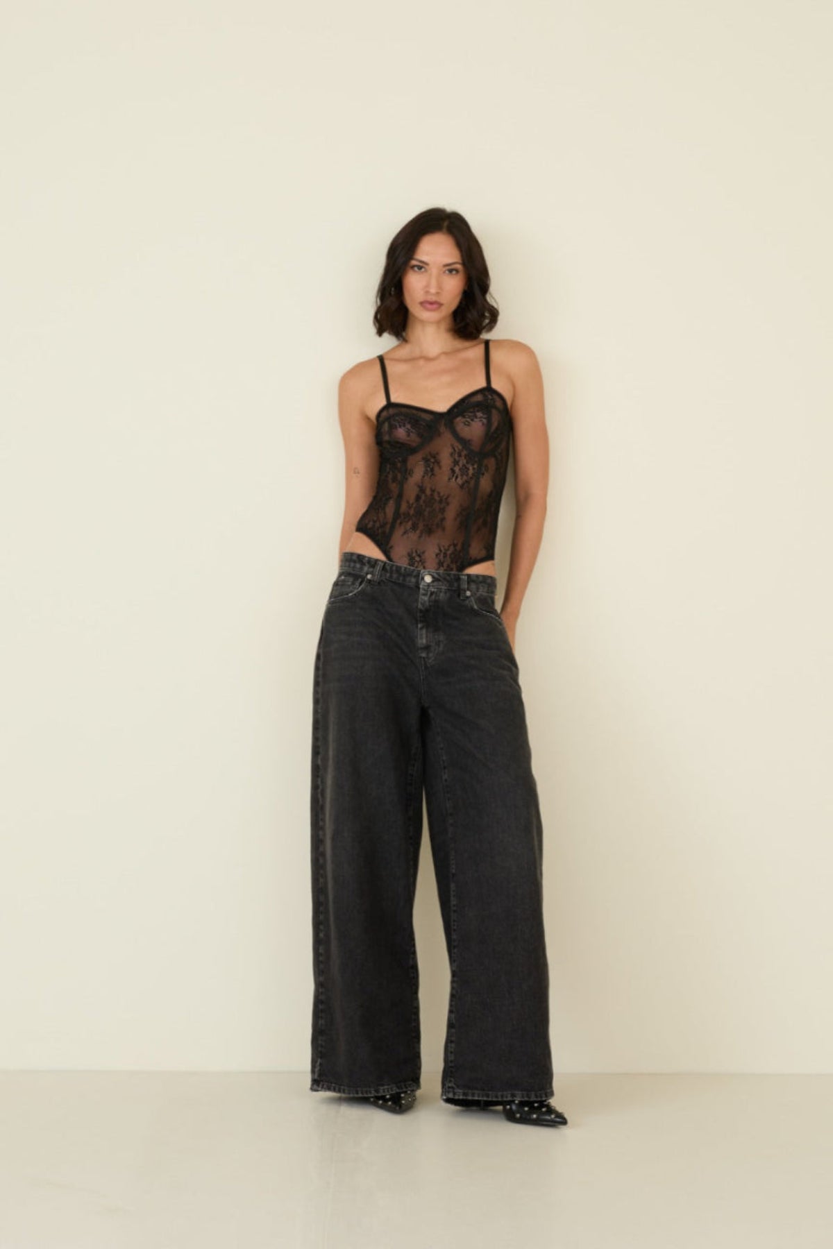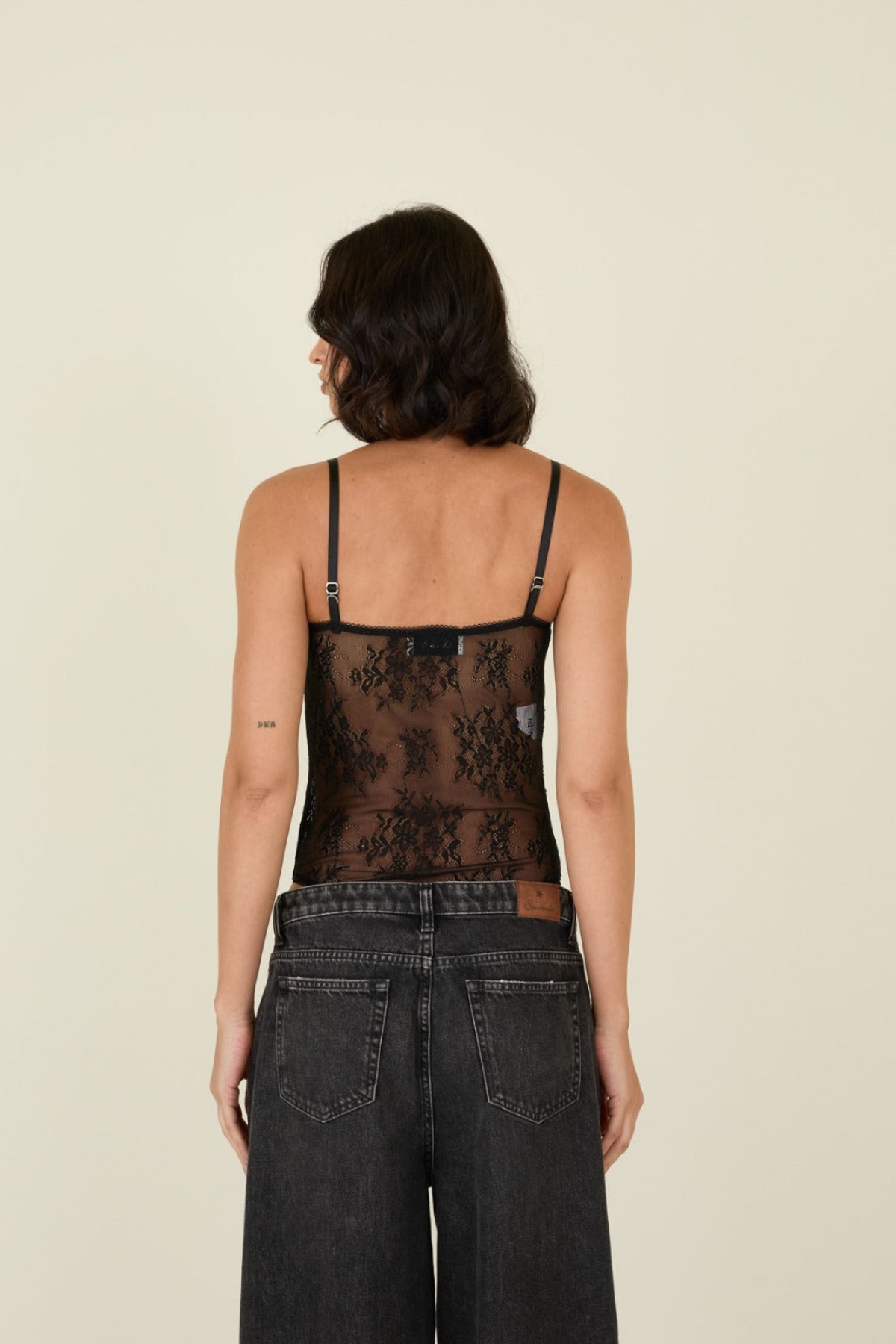 Body in Pizzo Nero con Spalline Sottili