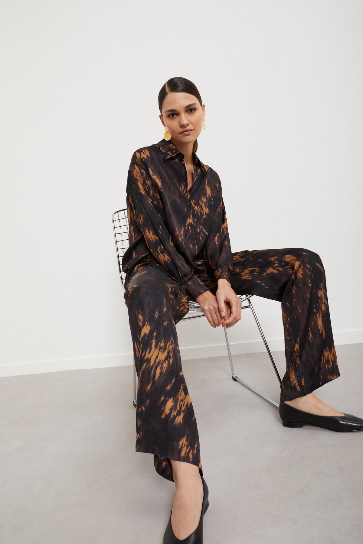 Dettagli attuali e finiture ben bilanciate completano il design. Camicia over in pura viscosa stampata.