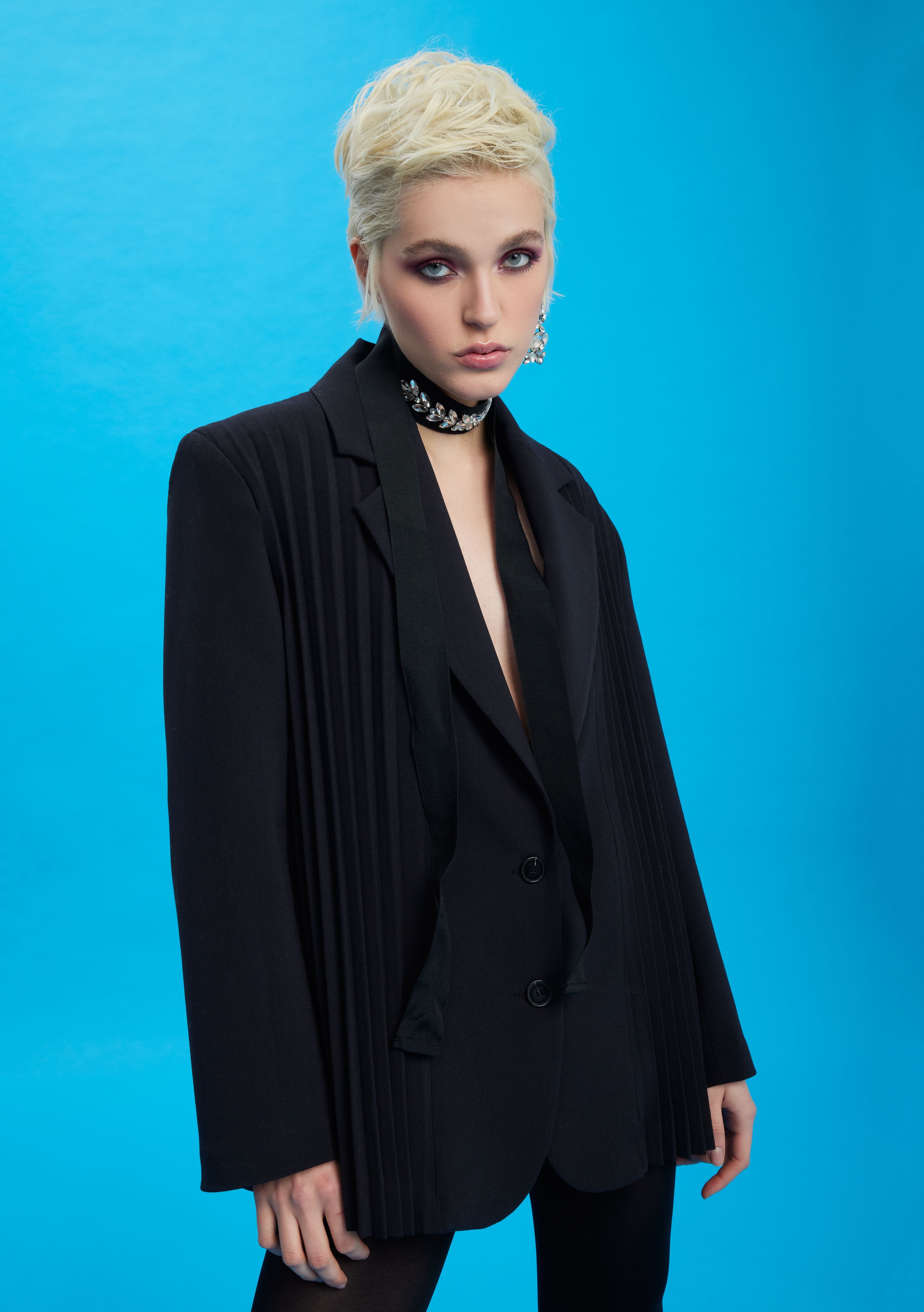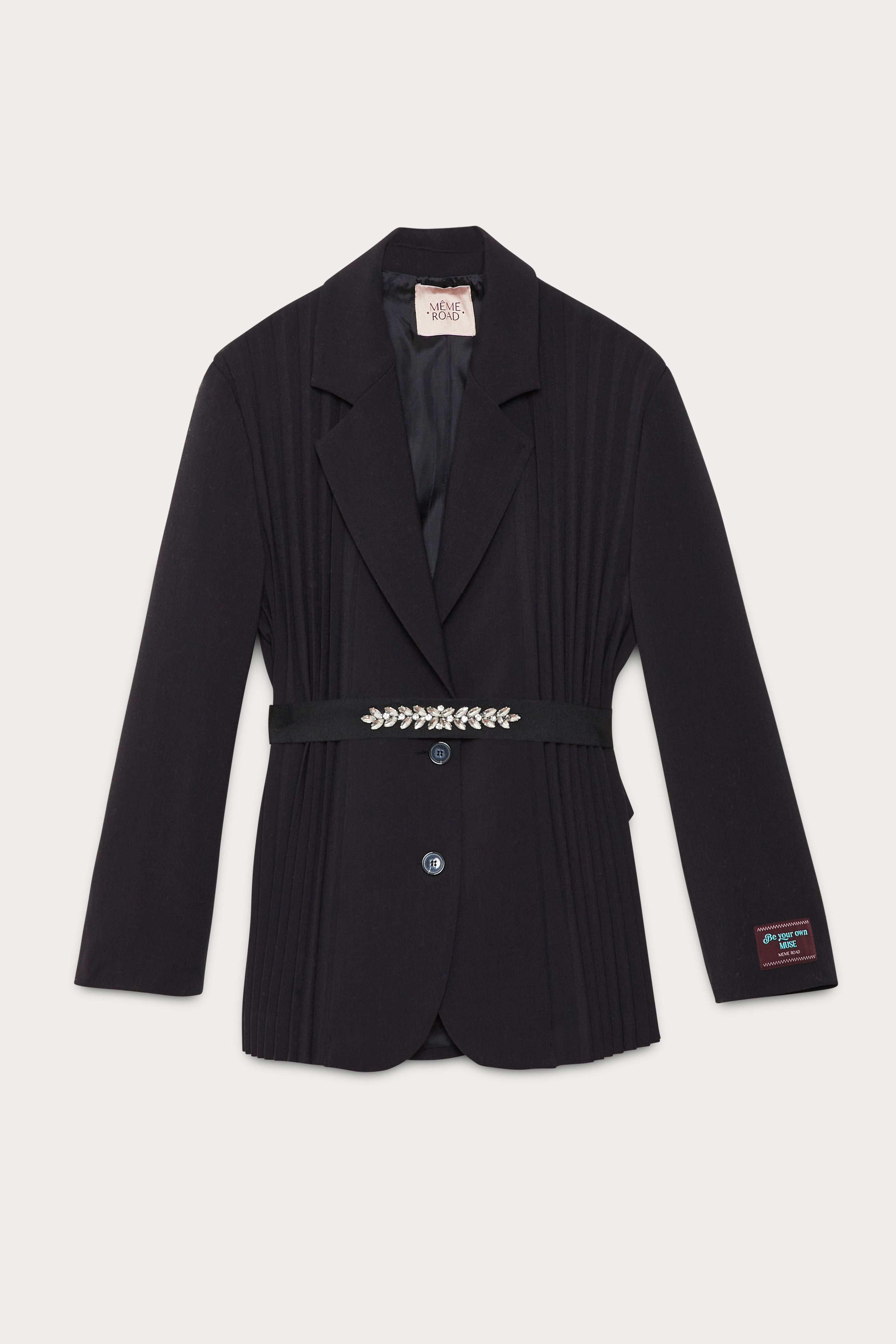 Giacca con inserti plissettati e cintura con applicazioni
