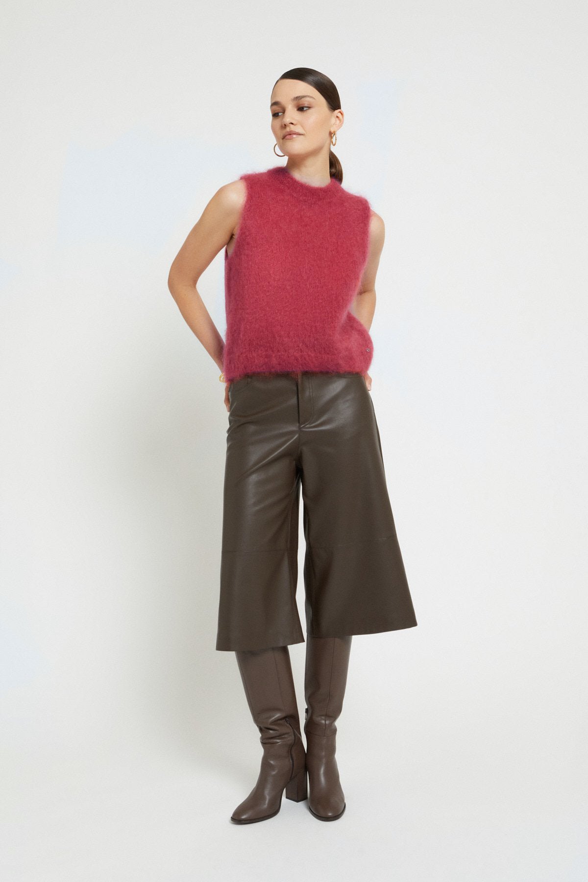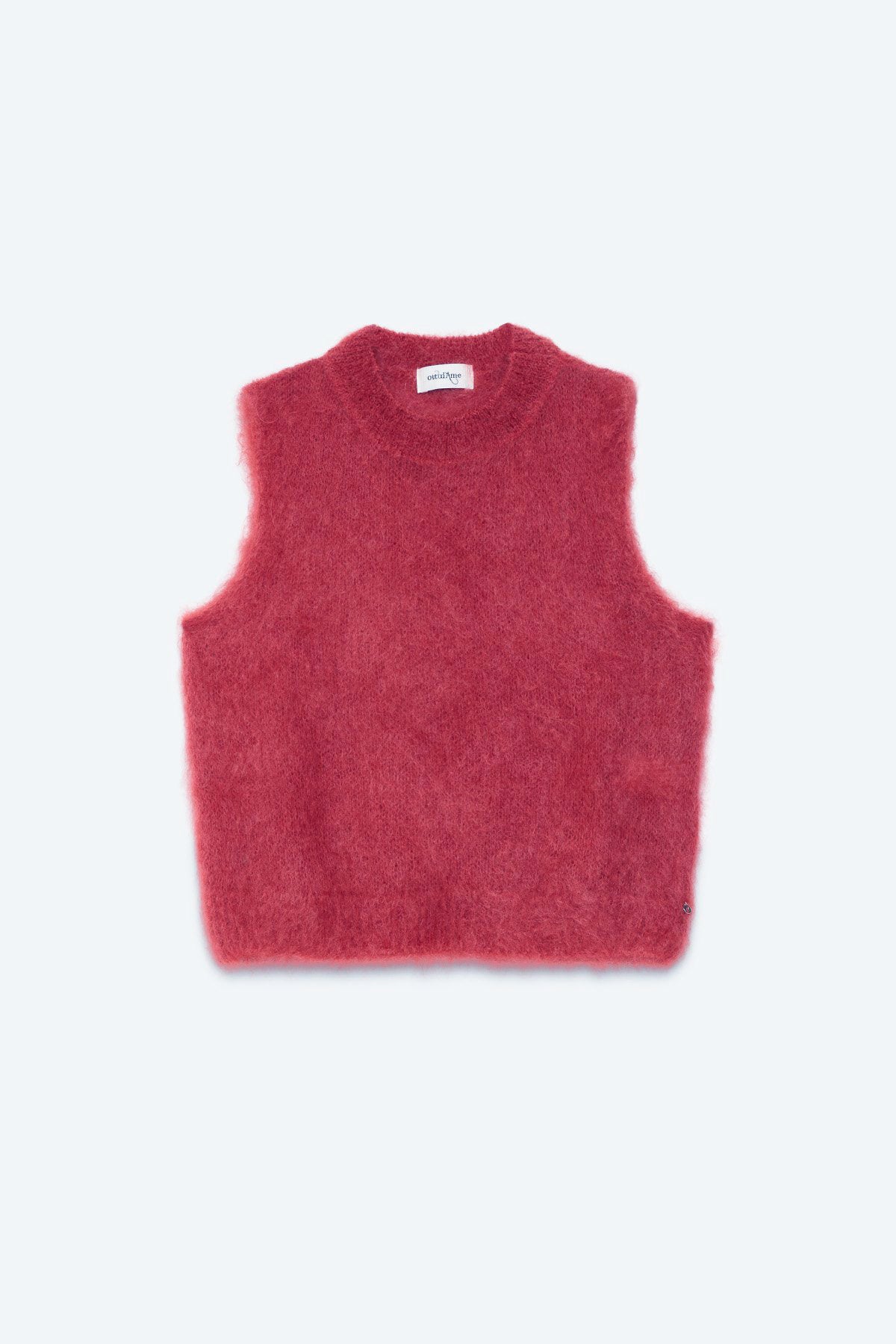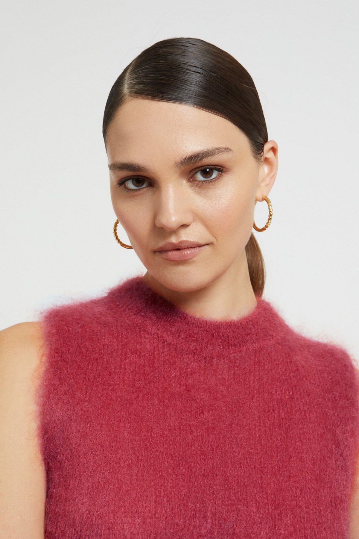 Dettagli attuali e finiture ben bilanciate completano il design. Gilet fluffy in lana mohair con scollo tondo.