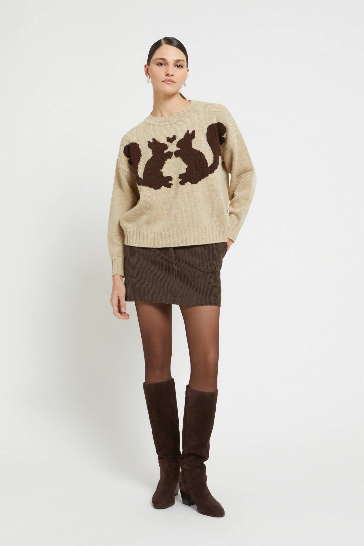 Dettagli attuali e finiture ben bilanciate completano il design. Maglione in misto lana con scollo tondo e ricamo.