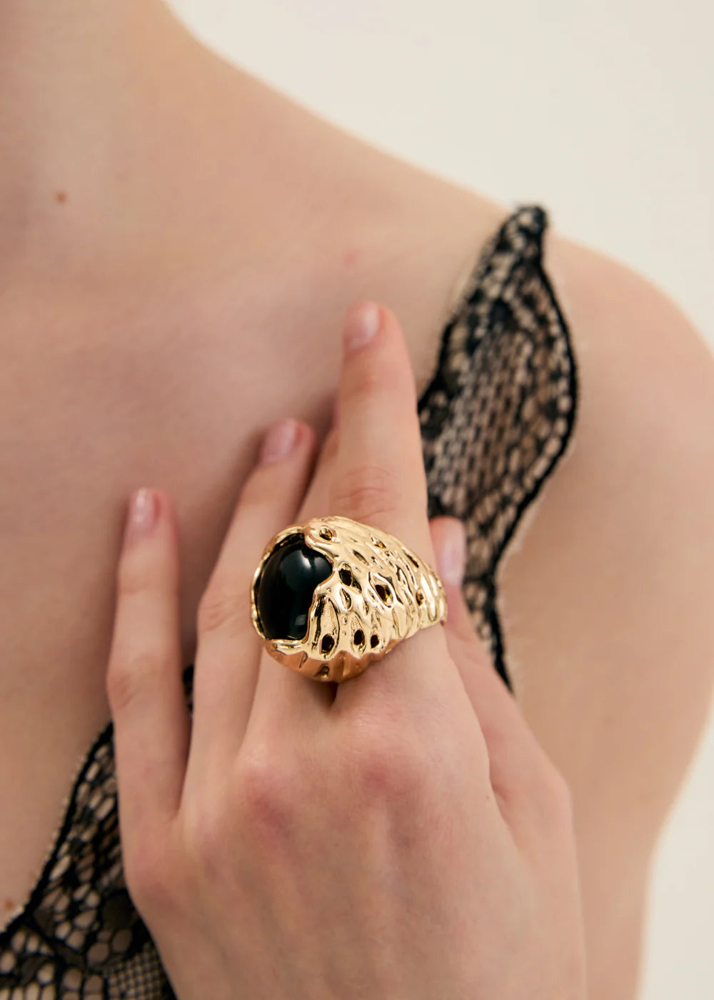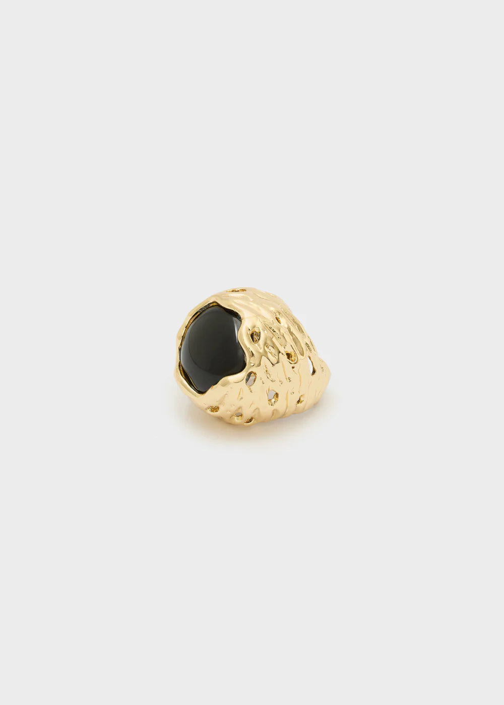 Anello statement dorato con pietra nera