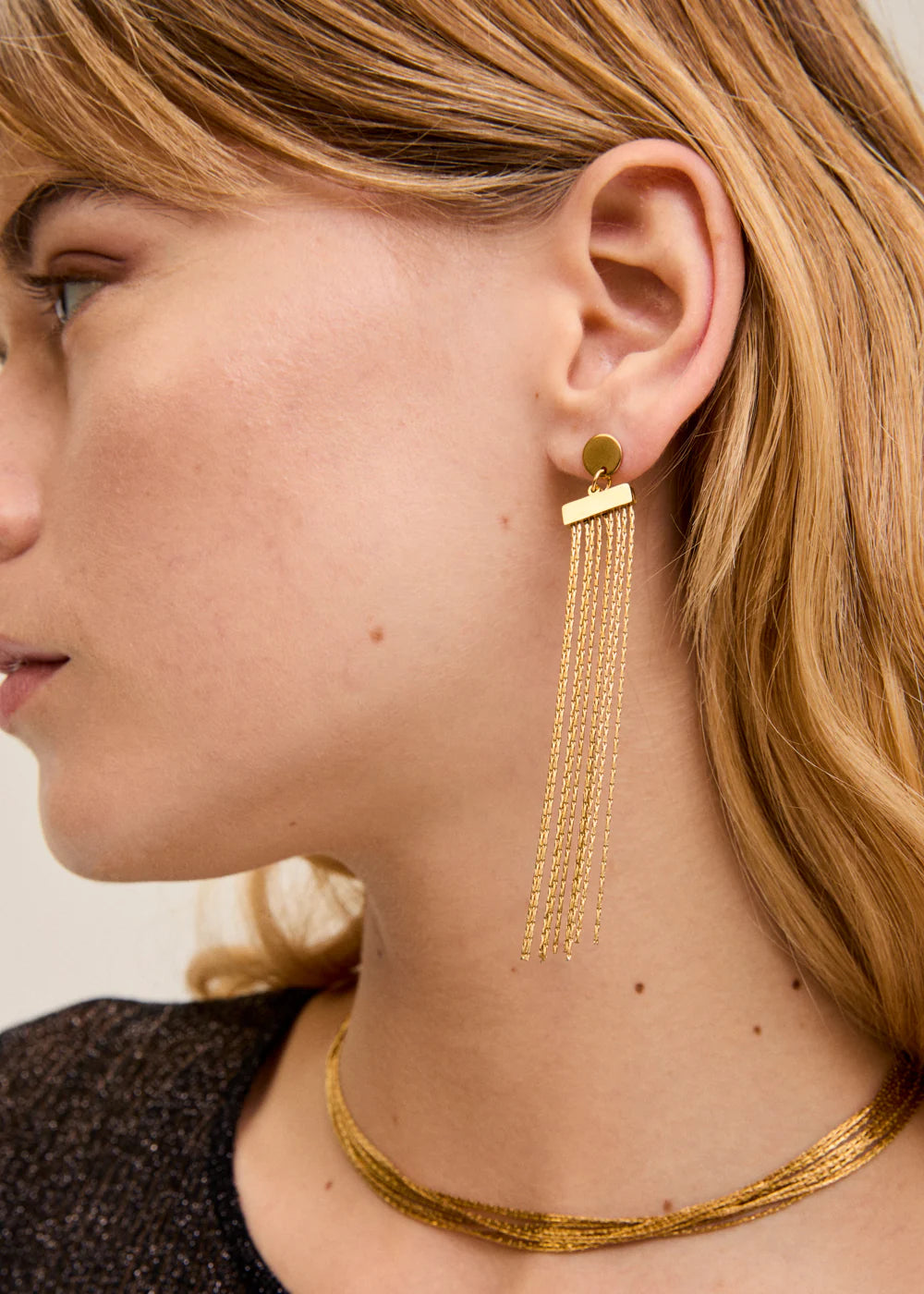 Orecchini pendenti dorati con catene sottili