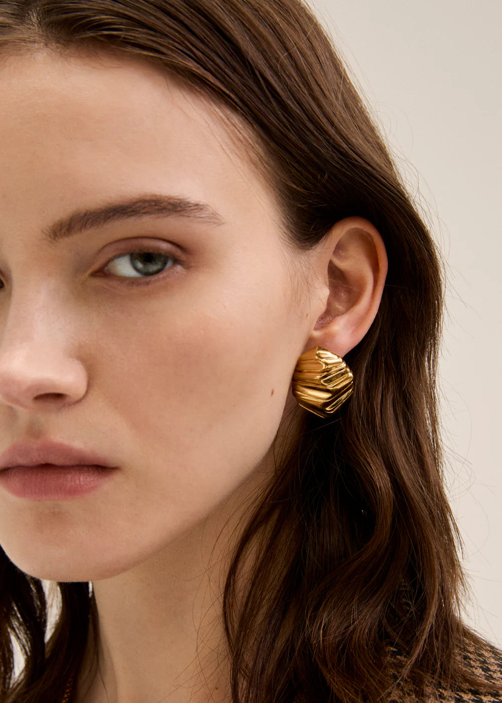Orecchini a cerchio dorati con design scultoreo