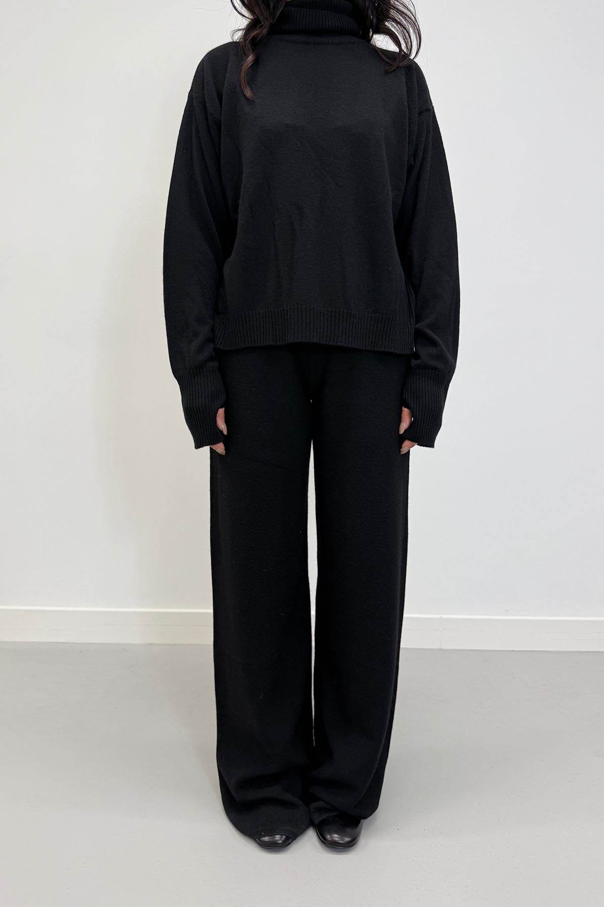Pantalone nero a gamba dritta: reinterpretazione contemporanea con attenzione ai dettagli e alla qualità.