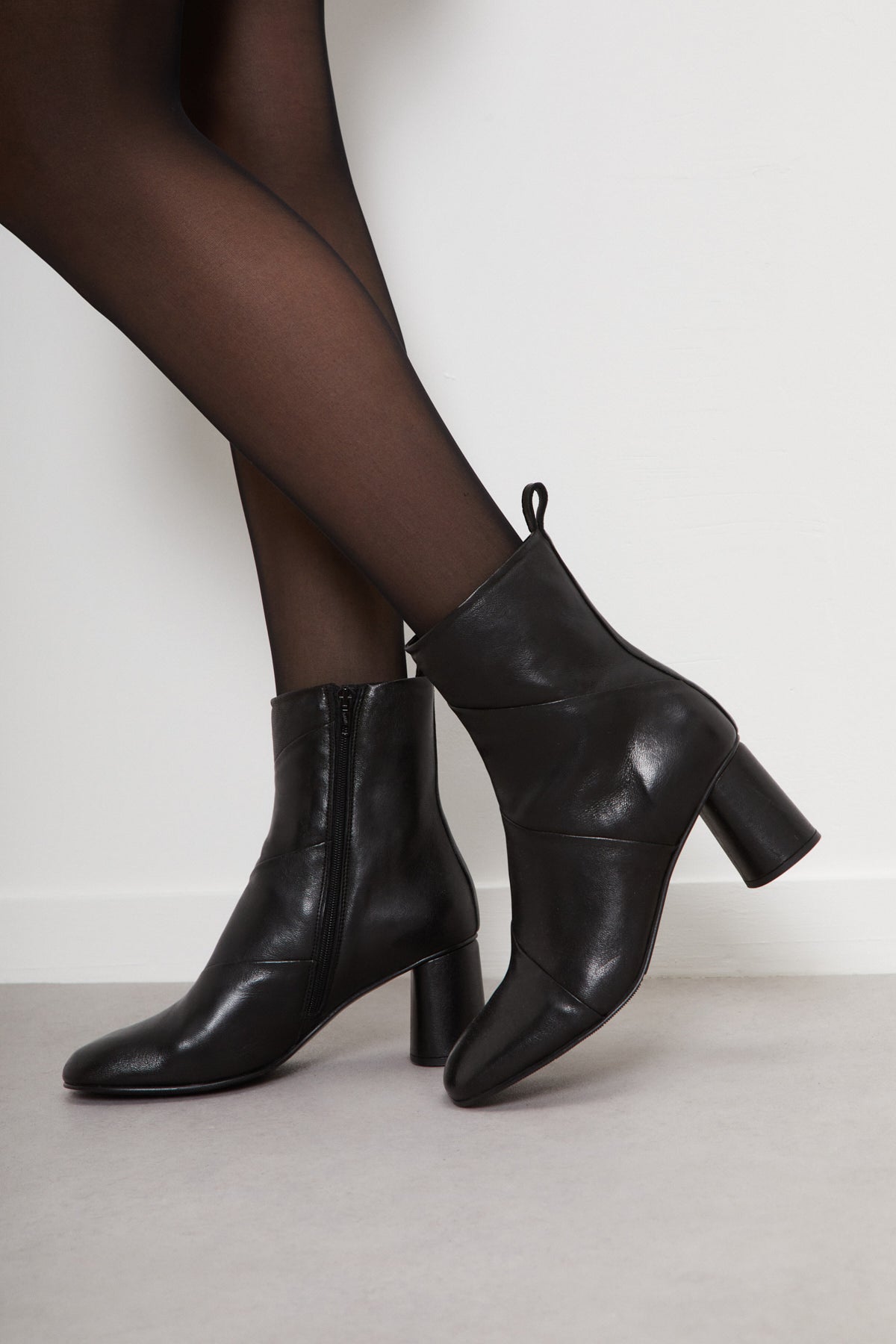 Dettagli attuali e finiture ben bilanciate completano il design. Tronchetto alla caviglia in vera pelle con tacco medio e punta stondata.